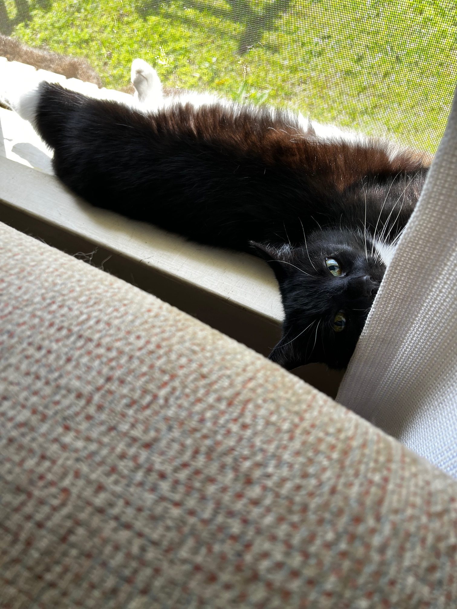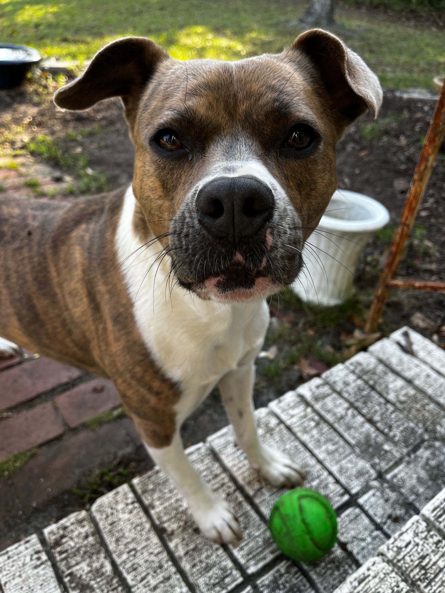 So here I am sitting in the warm Carolina sun. Safe on the steps of my own little cottage, tossing a ball for my own brave brown dog, with my old black and white cat asleep in the window. I sit in my comfort and privilege and think of my doppelgänger. Wherever she is. And so I think I must pray for her – and her dog and her cat.